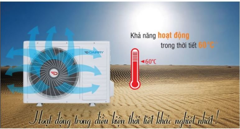 Với thiết kế chât liệu cao cấp bằng hợp chất không gỉ, chống oxi hóa cao chính vì vậy mà dù ở ngoài trời thời tiết khắc nhiệt thì dàn nóng của điều hòa inverter Darry i-DR09KC vẫn hoạt động bình thường. Máy móc có hệ thống quạt gió công suất cao giúp máy luôn trong tình trạng ổn định hoạt động không bị nóng.