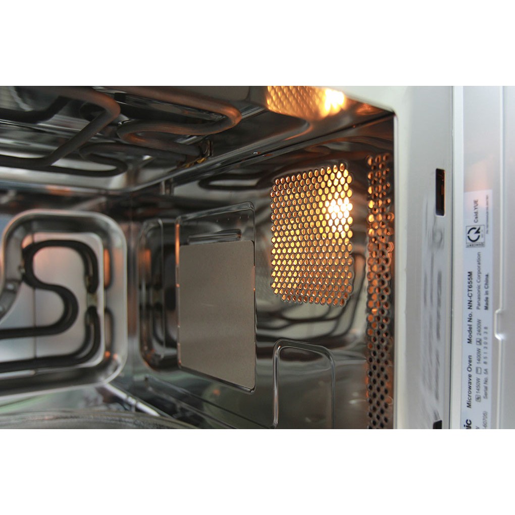 Lò Vi Sóng Có Nướng PANASONIC NN-CT655MYUE với màu xám bạc sang trọng, cùng kiểu dáng thiết kế tinh tế giúp tạo thêm điểm nhấn cho không gian bếp của nhà bạn.