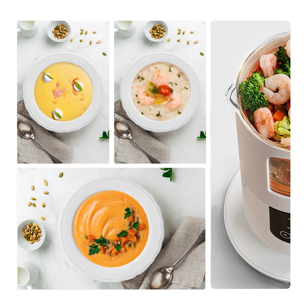 Nấu cháo, hầm, xay, làm sạch, tiệt trùng, hâm nóng – đáp ứng mọi nhu cầu chế biến thức ăn dặm cho bé.