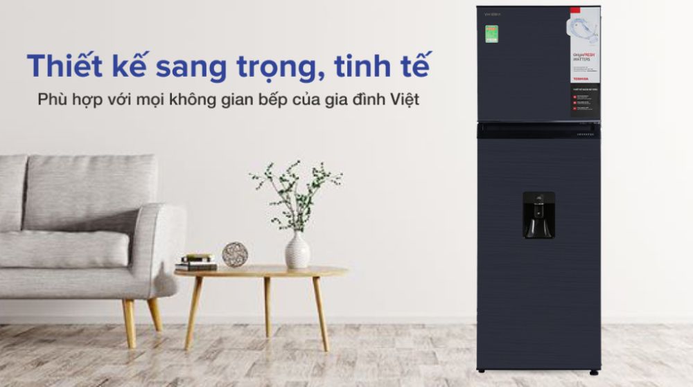 Tủ lạnh Toshiba sở hữu thiết kế bên ngoài thanh lịch, tinh tế với kim loại phủ sơn tĩnh điện với chống bám vân tay, nhờ đó tôn bật không gian ngôi nhà trở nên sang trọng và hiện đại hơn.